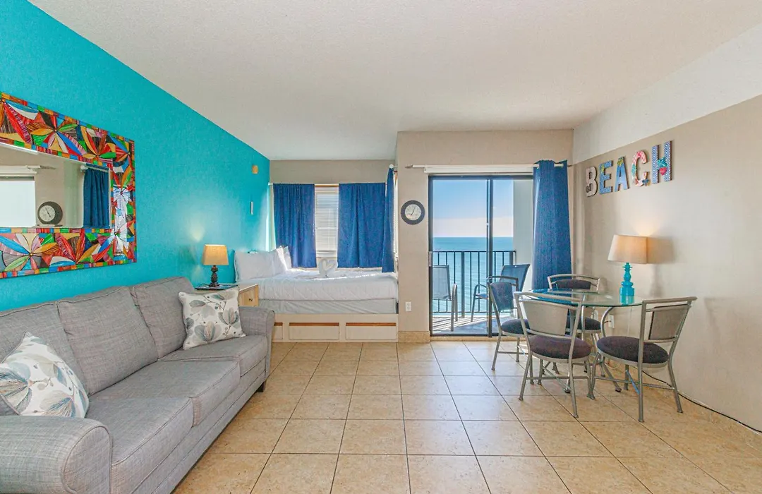 Offering views of the sea, New! Palace Resort Oceanfront Studio Sleeps 4 comprises a balcony and a seating area. At the apartment, guests will enjoy the convenience of a dryer and bath sheets in the bathroom. Moreover, there is a separate toilet and a shower as well.